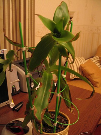 У меня стоит у самой батареи, и в ус не дует. Появился новый стебелек, за неделю сантиметров на 10 вырос. Что делать не знаю. Пытаться укоренять в другом горшке, или пусть так сидит, или это цветонос появляется... Причем, новый стебелек не растет вверх, а лежит на столе... Знатоки, может ему опору поставить, я даже не знаю...