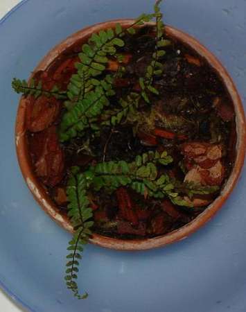 Сверху у мамы мох не лежит, а что касается папоротников: у меня Асплениумы и нефролепис обычный - тоже так пересадила, а потом ктенанту, фикусы все, фуксии, юкки, плющи... времени немного прошло (с августа), но по растениям видно - довольные Кстати, у меня просто ОГРОМНЫЕ батареи, в комнате очень сухо и жарко, но растения растут и кончики не подсыхают, земляной ком тоже.