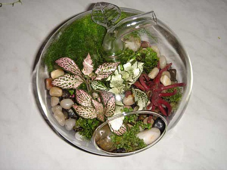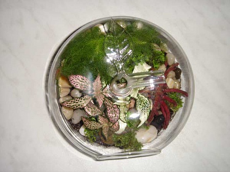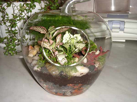 Проблемы с проветриванием не существует если выбирать соответствующие растения. апример папоротники и мхи будут хоть целый год расти под каплепадом. Как например у меня.