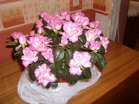 Эх, рано я хотела порадоваться что мои азальки прижились после пересадки. Сегодня заметила что белая листики опустила и бросается ими. Что с ней можно сделать или это уже все, кирдык? А еще у нас в магазинах появились азальки с простыми цветками, такого нежного бело-розового окраса. Видно к 14 числу. Ох, я на них облизывалась ,но купить не решилась. Думаю сначала свои на "корни" поставлю, а там посмотрим.