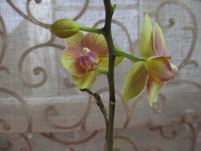 Phalaenopsis пестрая мультифлора – 750 некрупный цветочек около 5 см редкой окраски, растет цветонос, возможно сорт Champion Colorful