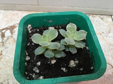 Echeveria glauca. При хорошем освещении по краям листьев вариегатность в виде белой карандашной обводки. 100 р. На первом фото - мама.
