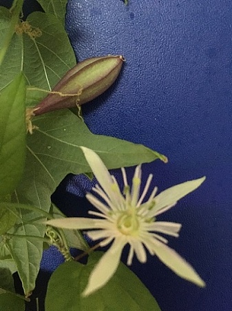 Passiflora Vanila Cream. Цветы с ароматом ванили, за что и получила свое название. Цветет с весны и до сих пор и завязывает красивые ребристые плодики с бордовым оттенком. Растение компактное. Первый черенок побольше 300 р. Заказан. остался второй - 200 р.