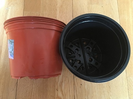 Горшки рассадочные большие. Б/у. 2 коричневых диаметром 18 см и 2 черных диаметром 17 см. На дне одного из коричневых есть трещина, на функциональности не сказывается. Все вместе 50 р.
