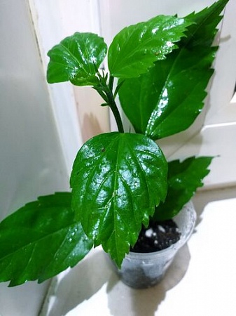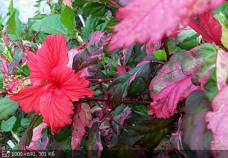 Hibiscus Rose flake  350 ( листья на солнышке,  с розовым переливом, яркий сорт).