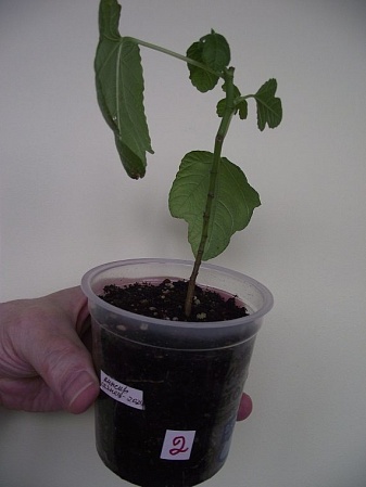 1. Инжир сеянец от крупного темноплодного родителя - по 100 р. В 300-г и 400-г стаканах. По науке плодоносить должен через 1-2 года. Правый прищипнут для ветвления. Пошли два побега.