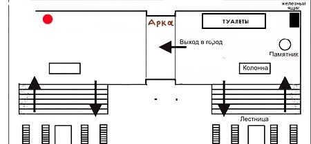 Буду стоять напротив дальней от Головы лестницы, под вывеской