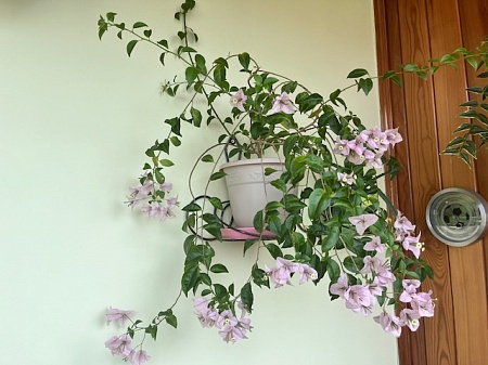 2. Бугенвиллия Lilac Cascadе - по 200 р. Два черенка в 500-г и 300-г стаканах. Растет у меня в метре от окна в углу на северной лоджии. Если растить на солнечном окне, то окрас будет более ярким (фото из инета). Склонна к ампельности. Пересаживать пока не надо. Можно начать дважды в месяц слегка удобрять. Одна из моих самых быстрорастущих бугенвиллий. ОСТАЛАСЬ КОТОРАЯ НА ФОТО.