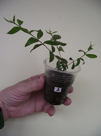 5. Мирт крупнолистный - 250 (№ 1) и 200 р. (№ 2). В 150-г стаканчиках. Укореняшки от материнского растения из Тимирязевской Академии. Бурно растут. Скоро надо пересаживать.