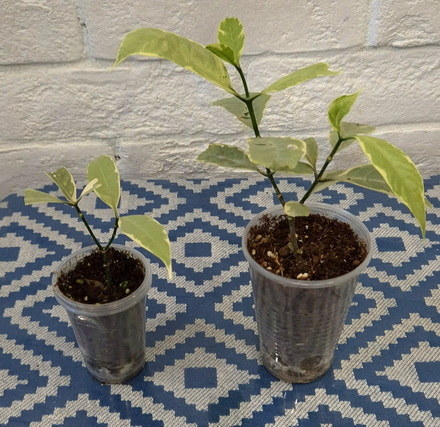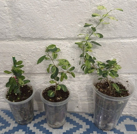 41. Psidium guajava 'Paen See Thong' variegated, два молодых растения по 2500, левое бронь Анна :