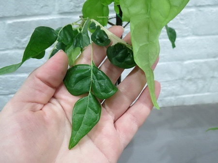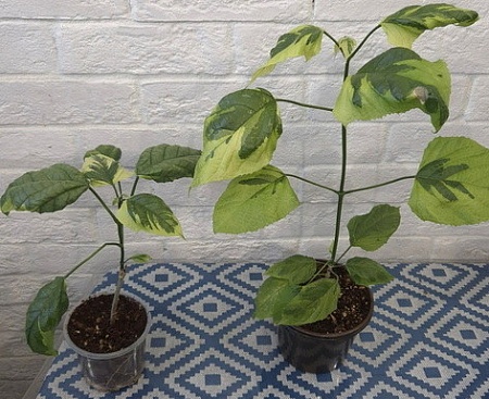 6. Клеродендрум паникулатум вариегатный. Левый, горшок 500 мл– 4500 руб. Лена Правый взрослый почти, на нем на верхнем листе ожог от диода, в остальном – практически идеальный, около 50 см – 6500 руб. Таня: