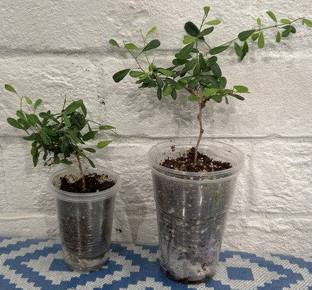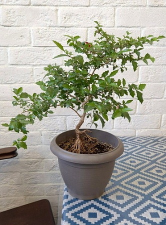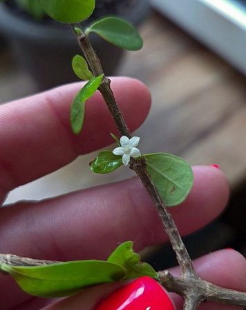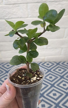 44. Syzygium paniculatum Dwarf, мелкий сизигиум. В комнатных условиях растет более разреженным, чем на фото с улицы, но тоже мелкий. Мельче только буксифолиум из тех, что видела. Но у этого активнее и понятнее рост, мягче ветвление. Новые росты светлые . 800,1000 АНя, 1300 Оля