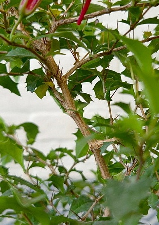 слоистая кора, колючки, красные цветы - крайне декоративное растение