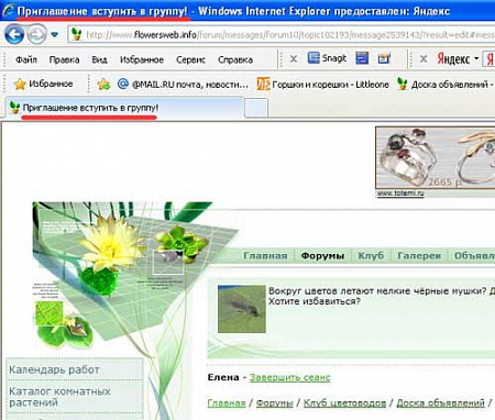 Здравствуйте. Сегодня заметила странную вещь, на любой странице и в любом разделе форума вкладки и окно обозревателя называются не как положено, а всегда одинаково "Приглашение вступить в группу!", причем эта надпись еще и "пляшет" - то со звездочкой в начале, то без. Это у меня вирус на компе?