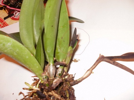 Субстрат как и фаленопсисов -кора сосны и немного сфагнума. вчера по обрезала корни гнилые, на многих есть пару молодых корней, свежих , и детки лезут и все с коричневым листом. Опрыскивать не буду, лучше поставлю поддон, но это все равно не спасет ее от гнили . Как то пол года назад ее не поливала наверно месяца 3-4, думала подсохнет и гнили не станет, и как вы думаете, не чего , результат НОЛЬ и самое главное не умирает и стоит на одном месте рост. У меня много орхидей с ними проблем нет, но каттлея одна такая.