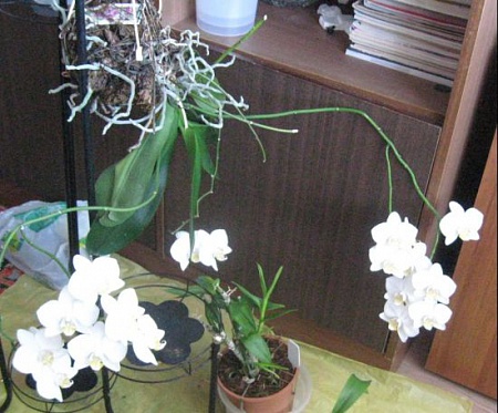 У меня есть тоже много уценок и скопился уже немалый опыт по их выхаживанию. Фаленопсис №1, - это самая первая моя орхидея, куплена за 50 руб. в 2008 году, выглядела внешне неплохо, но корни были не очень А сейчас это уже монстрик, в процессе экспериментов рос и в корзине и на постаменте из коряжек Фаленопсис №2, - не уценка, но пришлось забрать у мамы в очень плохом состоянии (сосудистое увядание) сейчас уже все в порядке, цветет