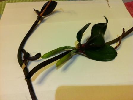 Проблема с одним из двух цветоносов, на которых растут "детки в клетке" – т.е. растут на срезанных цветоносах – внезапно, в течение 2-3 суток цветонос сменил темно-зеленый цвет – на коричневый.