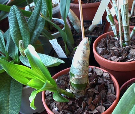 Зверь: Миша, мне пришла в голову ещё одна "гениальная" идея - я подвязала новый рост цикнодеса к бульбе и верёвочку посильнее затянула. Теперь оба почти вертикально вверх торчат.