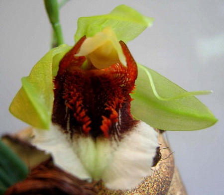 У меня сплошные невезения... То выкинула бутон корихепея, и когда уже должна была открывать его, резко засушила. Но на неё я не в обиде - корней не было. У дракулы первый цветонос я сломала сама во время обработки, а второй сам умер после обработки фитовермом. Но на дракулы я тоже не в обиде, так как непонятный вредитель жрал их без зазрения совести. Четрые раза надувал бутоны трихоцентрум тигринум, и четыре раза они загнивали на ножке во время раскрытия лепестков. Но там тоже не было корней, это могло быть причиной. Башмак открылся уродцем, и если бы не второй цветок, я бы пребывала на его счёт в глубокой задумчивости. Но что надо было целогине salmonicolor, у которой шикарные бульбы и туча корней Мы были бы красивые...
