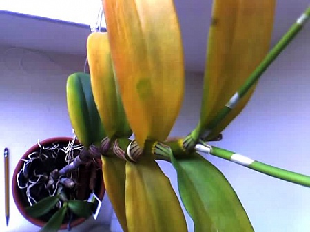 Я его ни разу не подкармливала, купила 3 с небольшим месяца назад. Но две другие орхидеи не пожелтели, а этот вот.... Бульба не мягкая. Насчет устал от цветения - может быть, я его купила цветущий, и все 3 месяца он цвел.