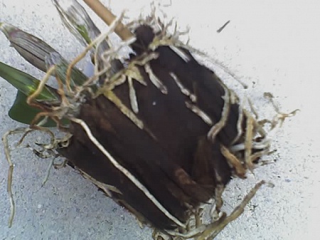В общем,обрезала я цветонос, а потом достала свою горемыку из горшка Корни преимущественно однородного цвета, светло-серого, на 2-3 кончики немного зеленоватые. У меня вопрос: что теперь делать с растением, можно ли его спасти, или оставить только молодые бульбы.