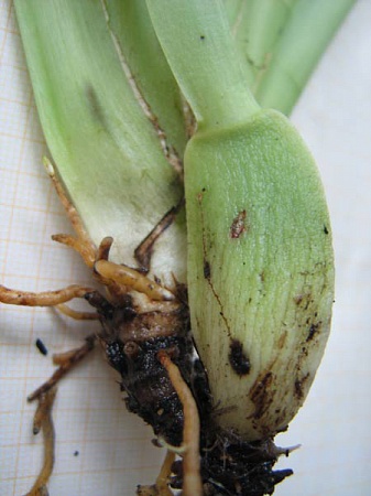 я не очень опытный специалист и орхидеями занимаюсь совсем недавно.Но мне отдали две мильтонии на последнем издыхании,которые были залиты магазине и почти сгнили.На фото(извините за качество)видно,что нет ни корней ни нормальных бульб.Мои дейстивия:обрезала ВСЕ гнилое,обработала гетероауксином и фундазолом,затем места срезов засыпала корицей и положила сушить на неделю(даже не брызгала)затем одно растение положила в тепличку на мох,второе оставила на тарелочке в более сухих условиях на редком опрыскивании по утрам.В тепличке растение быстро продолжило гнить и погибло,а вот на тарелочке проклюнулся росточек и после этого я перевела в тепличку.Корней по прежнему нет,но у моей мильтонии,кажется, есть шанс выжить.