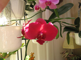 На переднем плане фаленопсис, которому уже 8 лет. Когда-то купила детку, еще даже не подозревая, что это за чудо - орхидеи. До сих пор удивляюсь, как он смог выжить при абсолютно неквалифицированном уходе. Обожаю его