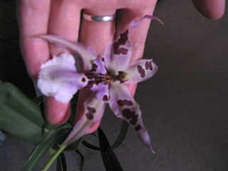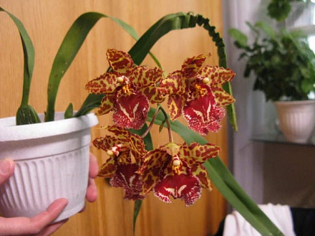 пришла в угле, и тоже из Тюмени. Под рукой была корзинка. Вот и сидит сие чудо в ней в крупной коре. Зимой положена досветка (аж листики загорают). Поливаю при температурах 20-21 и 13-16(ночь) раз в неделю под душем, пока минимум удобрений. Придет лето - откормлю А цветочки не из крупных - 7 см, но запах какой шикарный