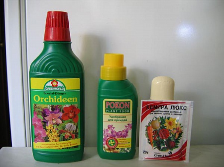 Для роста используется азотное удобрение (т.е., с повышенным содержанием азота), для цветения - фосфорное. Я подкармливаю понемногу в каждый полив. Нужно иметь в виду, что орхидеи подкармливают слабо разведенным удобрением, т.е., нужно брать пропорции меньше, чем указано на упаковке. Фаленопсисы в период роста я кормлю "Кемирой-Люкс", недавно купила удобрение Greenworld для орхидей. В принципе, можно использовать любые удобрения, обращайте внимание на формулу.