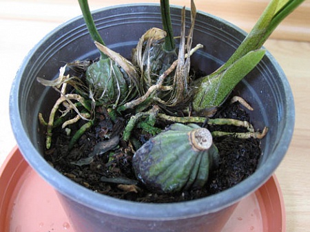 Марк, отличить стангопею от денрохилюма очень просто: первое у меня есть, а второго никогда не было Если серьезно, уж очень на фотке похожи и листовые пластинки, и складки на бульбах и расположение и форма кроющих чешуй… Кроме того, источник происхождения. Появление в Доме пионеров давно известной в культуре станги более вероятно, чем какого-то непонятного денрохилюма. Так что я за стангу, но зуб не дам Зверь, мою стангу я переселил в авоську лет 10 назад. Пару лет назад сменил ей субстрат, так она гадина стала расти с дикой скоростью, а цвести перестала. Неужели придется ждать, пока опять кора в глубине сгниет, а сверху покроется толстым слоем известняка?