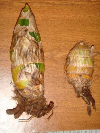 Ни разу не видела цимбы с такими вытянутыми бульбами, да ещё с проклюнувшимися почками посередине бульбы