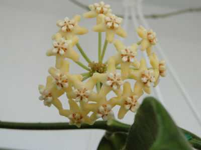 Хорошо, я присоединяюсь и начинаю с H. globulosa. С нее, так ее единственное цветение - предмет моей гордости: сам Тед Грин на своем сайте сказал, что не надеется дождаться цветения своего экземпляра глобулозы, так как у него не бывает нужного холода . Мы как-то привыкли скептически относиться к утверждениям, что цветение хой стимулируется прохладной зимовкой. Поэтому только отмечаю, что начиная с годовалого возраста (сантиметров с 40) H. globulosa исправно выпускала цветоносы с зачатками бутонов, но процвела только после прошлой очень холодной зимы (минус 35С-40С в течение двух месяцев на улице и 16С-18С на балконе, где она зимовала). При этом и солнца той зимой было необычайно много. H. globulosa куплена черенком с парой листьев 10.08.2006г. Зацвела 13.04.10г. на одном цветоносе, на остальных бутоны высохли, так как подступала жара этого лета.