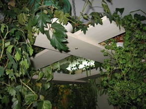 Спасибо всем за отклики У меня на кухне под потолком расположены растения довольно неприхотливые: нетребовательные к свету и влаге, хотя есть и папортник. Дополнительно не увлажняю, вроде ничего не сохнет. Но света маловато. Сейчас я хочу заменить потолочный светильник с лампами накаливания на люмки. Кстати, по поводу влажности- наверху ее все-таки, думаю достаточно- у меня почти под потолком на кухонных ящиках стоят под люмками фаленопсисы и фиалки. Чувствуют себя хорошо. Эту конструкцию мы подвесили на цепочках, которые прицепили на специальные потолочные крепежи (продаются в магазинах), вбитые в потолок. Каждый крпеж выдерживает нагружку в 60 кг. В общем, вот и все.