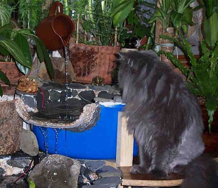 Ну вот, только что прошел первый прогон водопада (как говорят в театре). Приходила наша очень хорошая подруга, она актриса в театре и художник. Водопад одобрила. Доделывать конечно еще многое, но по крайней мере "зелененькие" начали обретать ПМЖ. Продолжаю разбирать фотки и описывать что , да как По свежим следам, вот и мордочка, прошу любить и баловать.