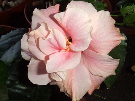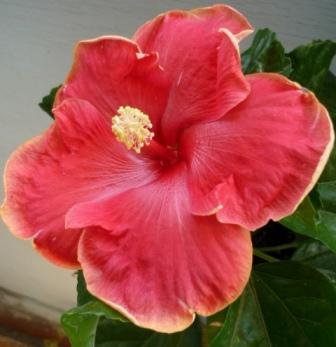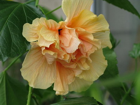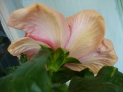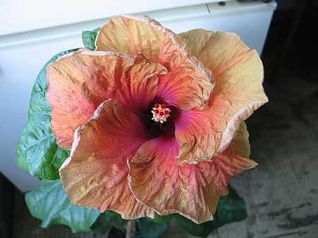 гибискус цвел в жару - единственный цветок реальный цвет - персиковый [IMG][/IMG] предполагаю, что сорт Текила Санрайз - подскажите!