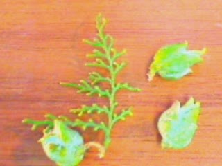 Вычитала, что шишки лучше срывать поздней осень, немного подожду и ещё пару шишечек попозже сорву. Я, гуляя, в одном дворе нашла замечательную, красивую, пушистую Тую, всю в шишках. В нашем городе туй не так уж и много, и все какие-то кривенькие чахленькие и на всех в этом году шишечки позасыхали или почернели в зародышном состоянии