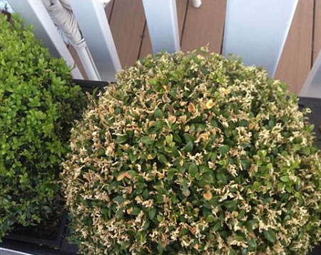 заболел самшит в том году все было хорошо, а в этом покрылся странной листвой