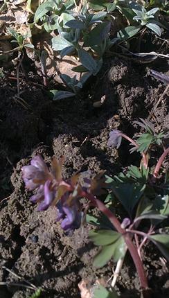 На моей клумбе во дворе. Все примулы только растят листики, а эта уже с цветами!
