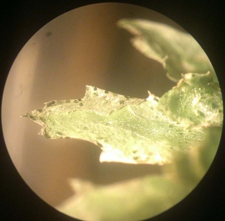 Рассада бархатцев видимо заболела. Края листьев подсохли и появились темно-зеленые точки. Рассада примерно неделю назад была полита сильнее обычного в связи с отъездом на три дня.