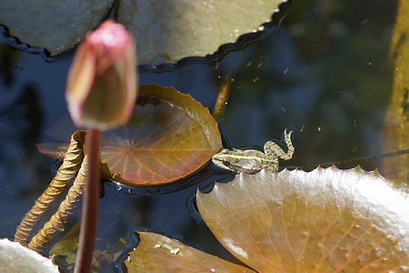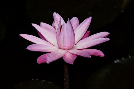 Изначально цветок возвышался сантиметров на 15 над водой. Но в понедельник вечером обнаружила его "полегшим" - стебель полностью в воде, бутон возвышался (в это время цветок закрыт). В общем, выглядел так, как на фото из дендрария.