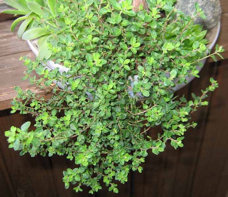 Прошлым летом посадила тимьян с дачи в плошку с суккулентами, для застекленного балкона. Зимой там температура, такая-же как на улице, а летом жарче. Перезимовал хорошо и сейчас выглядит вот так.