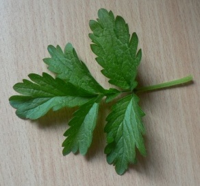 У этой строго по 5 листиков на черешке,размер розетки и листьев соотносим с земляникой,образует только розетки и усы,цвести пока не планирует.