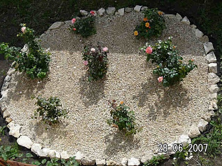 А я сверху на укрывной материал (в два слоя) или рубероид укладываю декоративную щепу. Так ее сантиметров 10 надо подсыпать(на цветочки в этом случае уже денег не останется), а на подстилкуи двух достаточно, т.е. экономия в 5 раз. Это денежная, а трудовая, вообще, не сосчитывается. Кстати, она тоже перегнивает потихоньку.