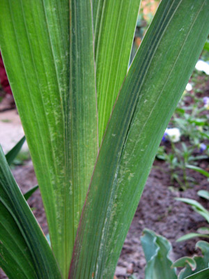 Помогите, пожалуйста! На самых больших и красивых гладиолусах появились какие-то странные светлые пятна. Издалека особо не заметны, цвета светло-зеленого. Колупать пробовала - не снимаются. Вредителей нет. Эти луковки у меня первый год, и сидят на этом месте тоже первый год. В фундазоле не замачивала - ну, так вышло.