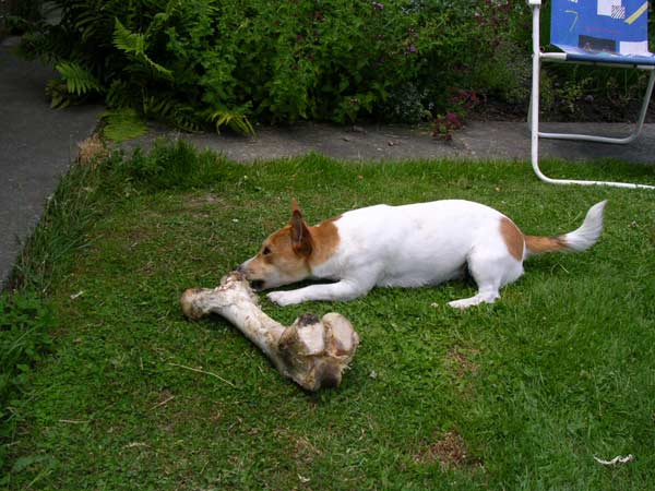 Второе. Характер настолько энергичный... Даже не знаю, насколько! Это не просто ТЕРьЕР, а САМЫЙ ТЕРьЕРСКИЙ ТЕРьЕР. Собачка прыгает, скачет, роет, нюхает, исследует, грызет - практичеки без перерывов на сон и отдых. Мои друзья ее называют "батарейка энеджайзер". Когда есть возможность не ограничивать ее передвижения весь день и она болтается на заднем и переднем дворе (с хозяйским видом, ибо собственница редкостная!) - весь день находя себе занятие и двигаясь. В этом случае, она - вполне терпимое существо. Если погода плохая, или все на работе и ей приходится сидеть дома - характер портится просто сразу. Она страдает от сенсорного голода и избытка энергии. Ужас-ужас. Хорошо, я могу ее выпроводить за дверь и дождаться, пока сама набегается и домой запросится. А "нагуляться" на поводке... Это не для ДР! Ей надо именно носится кругами и часами. Время от времени у меня возникает мысль отвезти ее на недельку на ферму к ее маме, для профилактики.