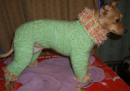 У нашей барбоски (немецкая овчарка) тоже был комбинезон, но это для прогулок в грязную погоду, чтобы потом брюшко не мыть. Она, когда, пардон, большую нужду осуществляла, была похожа на сидящего на корточках человечка, смешная