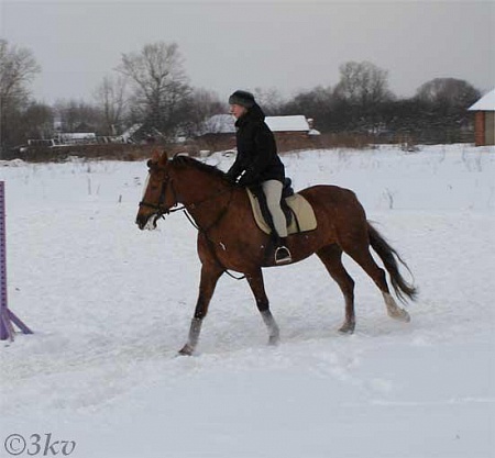Сложно писАть статьи по коневодству и не ездить верхом... В прошлом году не выдержала - заташила мужа в конный клуб, села в седло... оказалось что почти могу ездить! Пишу "почти" - потому, что все-таки травма дает о себе знать (не могу останавливать таскающую лошадь, при любой "внештатной" ситуации - валюсь вперед). Так обидно: руки остались прежними, а ноги "макаронные".