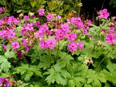 Герань крупнокорневищная, прекрасный бордюрный многолетник, быстро разрастается и образует как-бы валик, в то же время легко убирать излишки и держать форму (простой обрубкой при помощи лопаты), яркая нарядная оранжево-красная осенняя окраска листвы, цветки ярко-малиновые, средне-крупные (ок. 3 см) с носиком (гераниум). И еще одно положительное качество - ароматная листва - цитрусовые нотки.