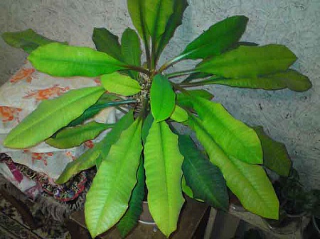 R@V, у молочаев, при всей их мощности и страсти к выпивке, корневая система - так, одно название. Поэтому в пересадке он у Вас на самом деле не нуждается, если Вы, конечно, не хотите поменять это ведерко из эстетических соображений. Но размер горшка оставьте такой же.