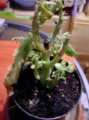 Немножко сгнивает. Для голландских растений это нормально В принципе перечеренковать - никаких проблем. Будет у Вас несколько каланхое в результате. Только выкиньте этот торф.